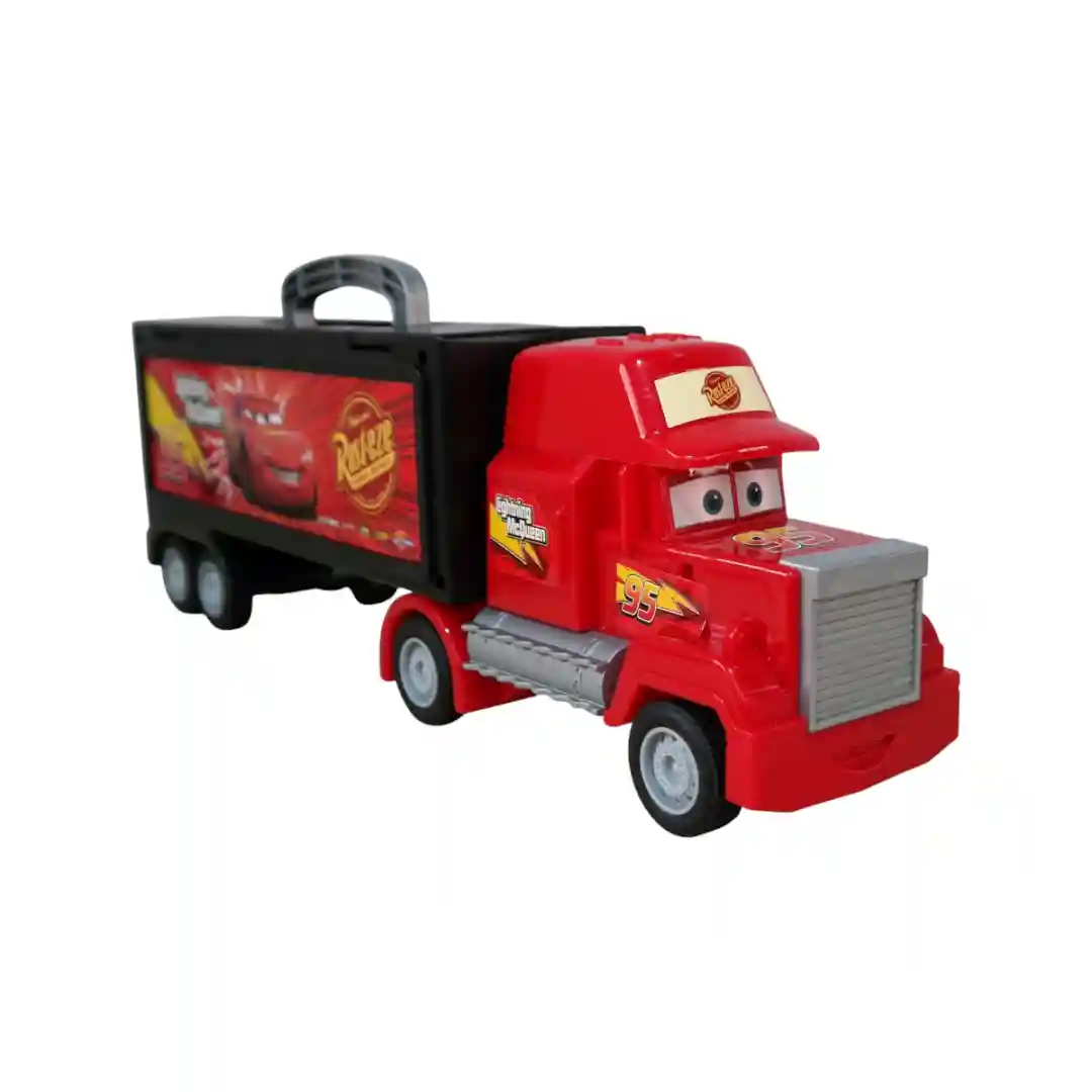 Diseño Inspirado en Personajes: El camión principal es de color rojo brillante y está modelado para parecerse al famoso camión de carreras de la película, con el número 95 claramente visible.