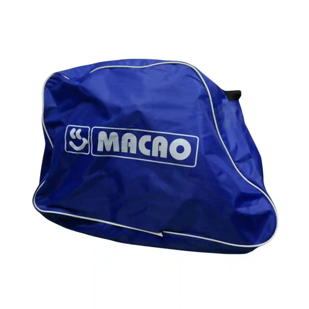 Y para completar el set, todo viene en una práctica bolsa de transporte azul con el logo de «MACAO» en blanco. Esto es super conveniente, ya que permite llevar los patines y el equipo de seguridad de forma organizada y limpia a cualquier parque o pista.