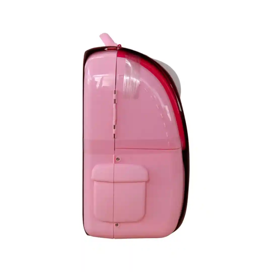 Diseño Plegable 2-en-1: Se transforma de una maleta/mochila compacta de color rosado y azul con un dibujo de un perro, a un área de juego desplegable.